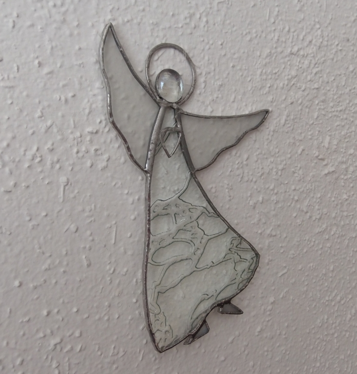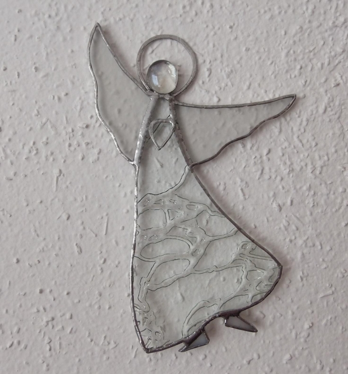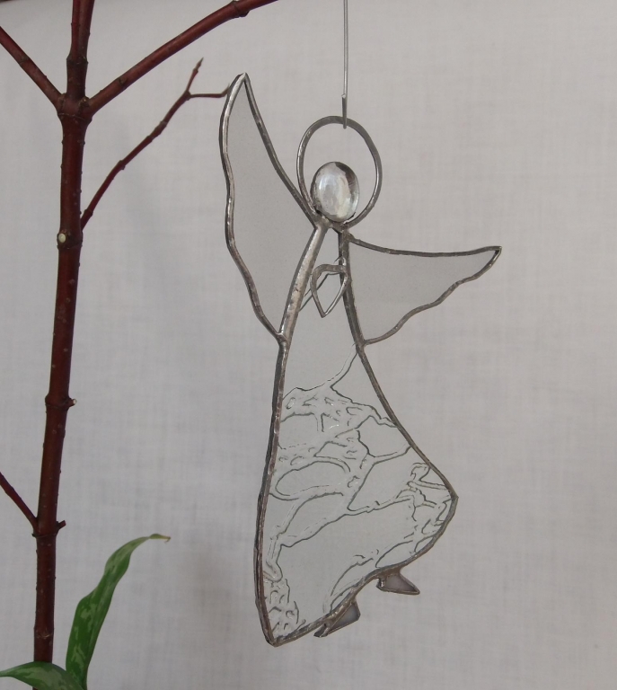 Romantický anděl. Můžeme zavěsit na stěnu, nebo, ještě lépe na okno.