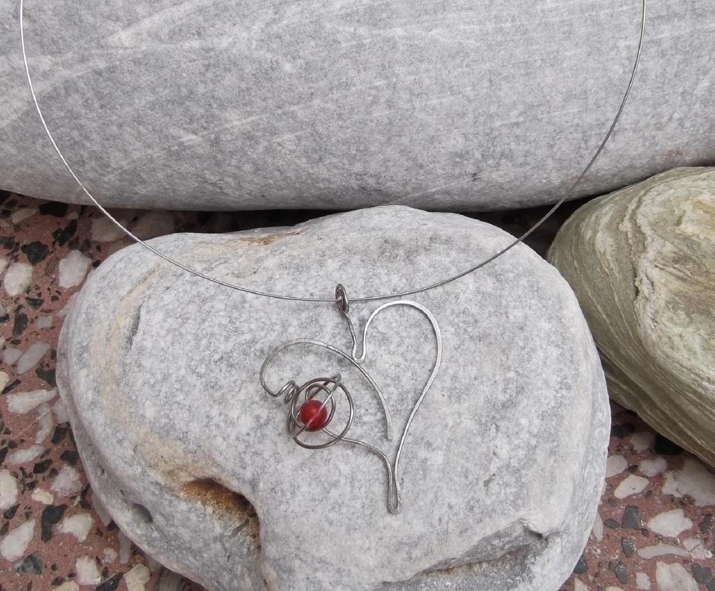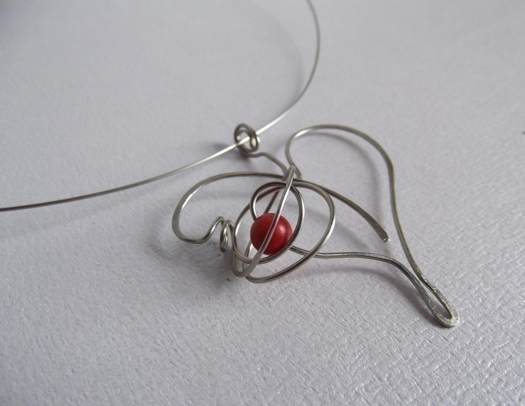 Autorský šperk. Červený korál uvězněný v tepu srdce...