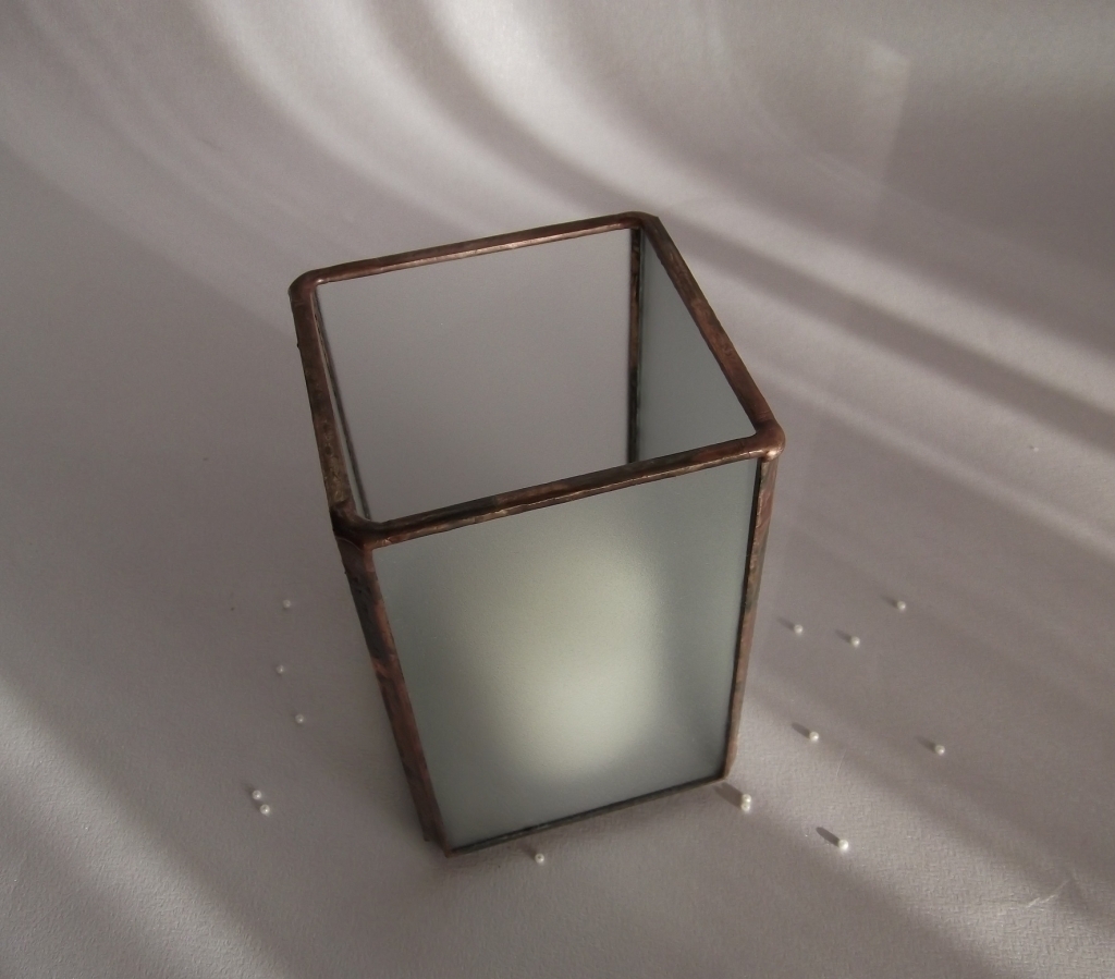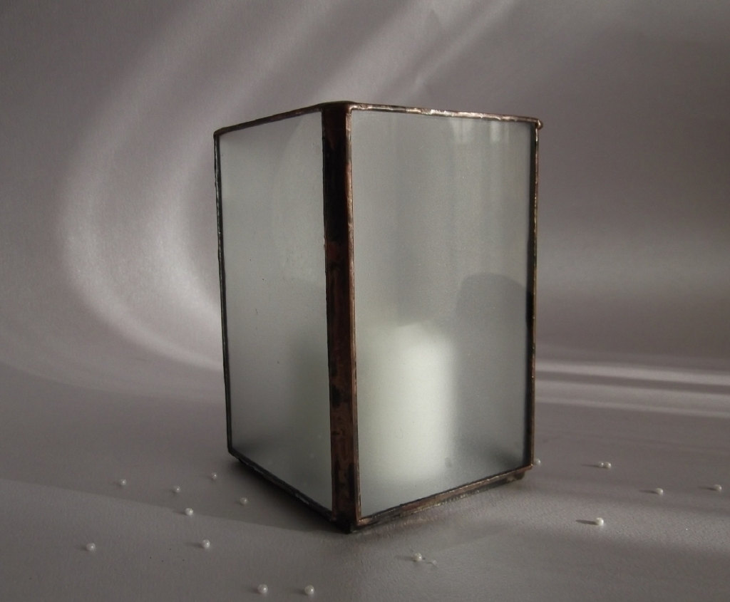 Stolní svícen, do kterého můžete vložit, jak čajovou svíčku, tak svoje vlastní nápady. Vyzařuje klidné rozptýlené světlo.Vypadá nádherně např. na poličce v moderním obýváku, ale i v létě na terase, kde svým tlumeným světlem vytváří intimní atmosféru.
